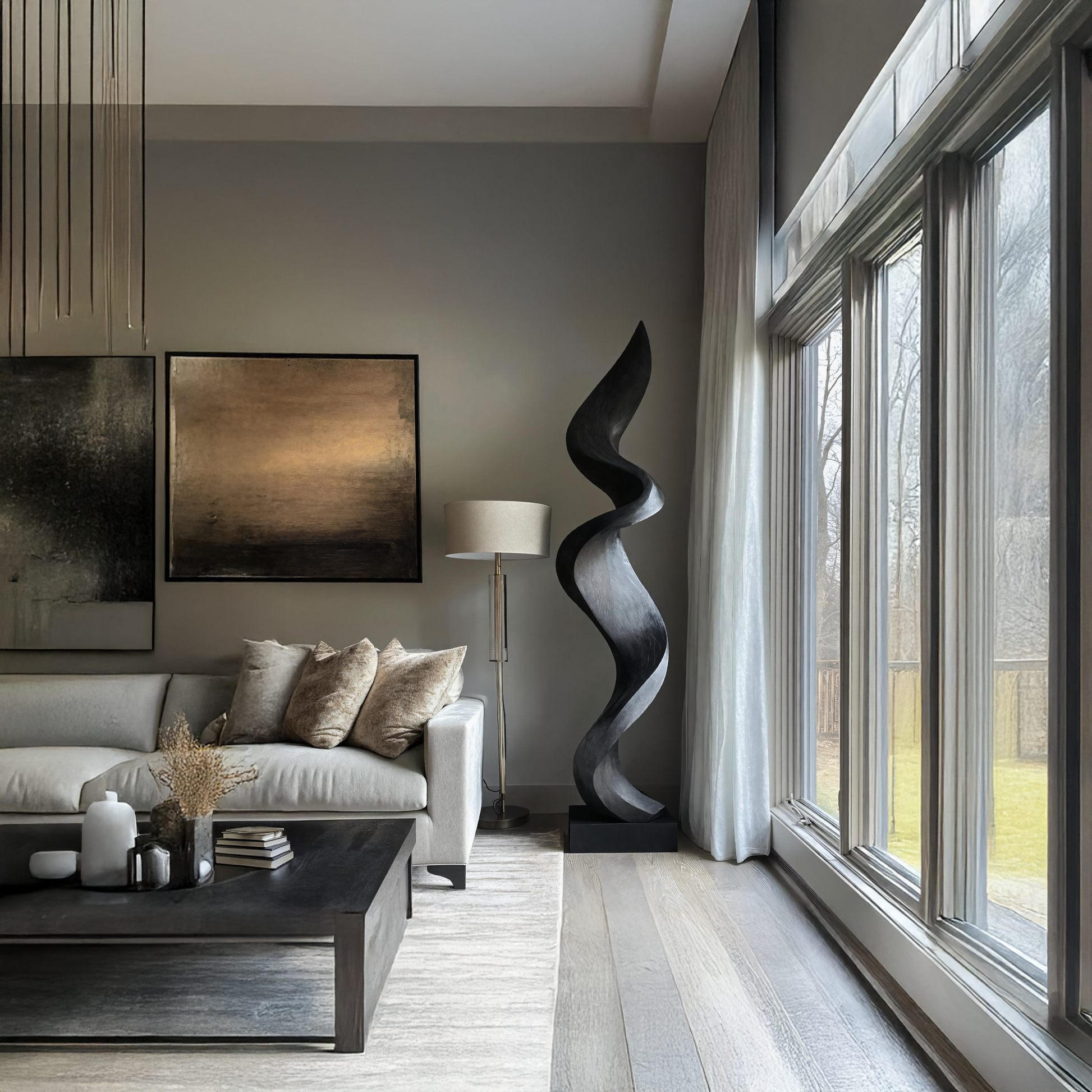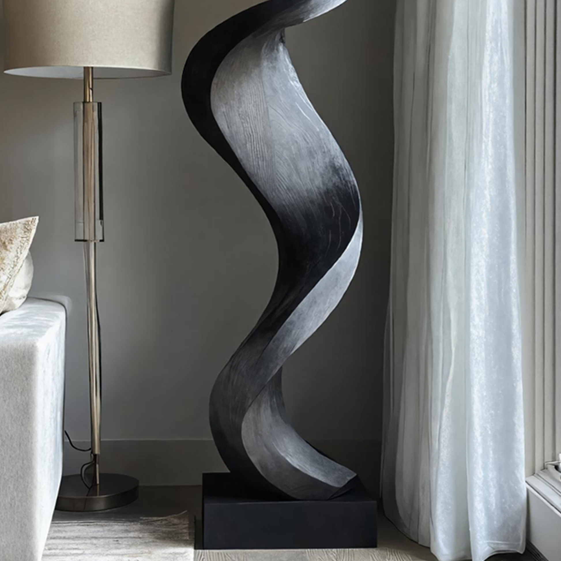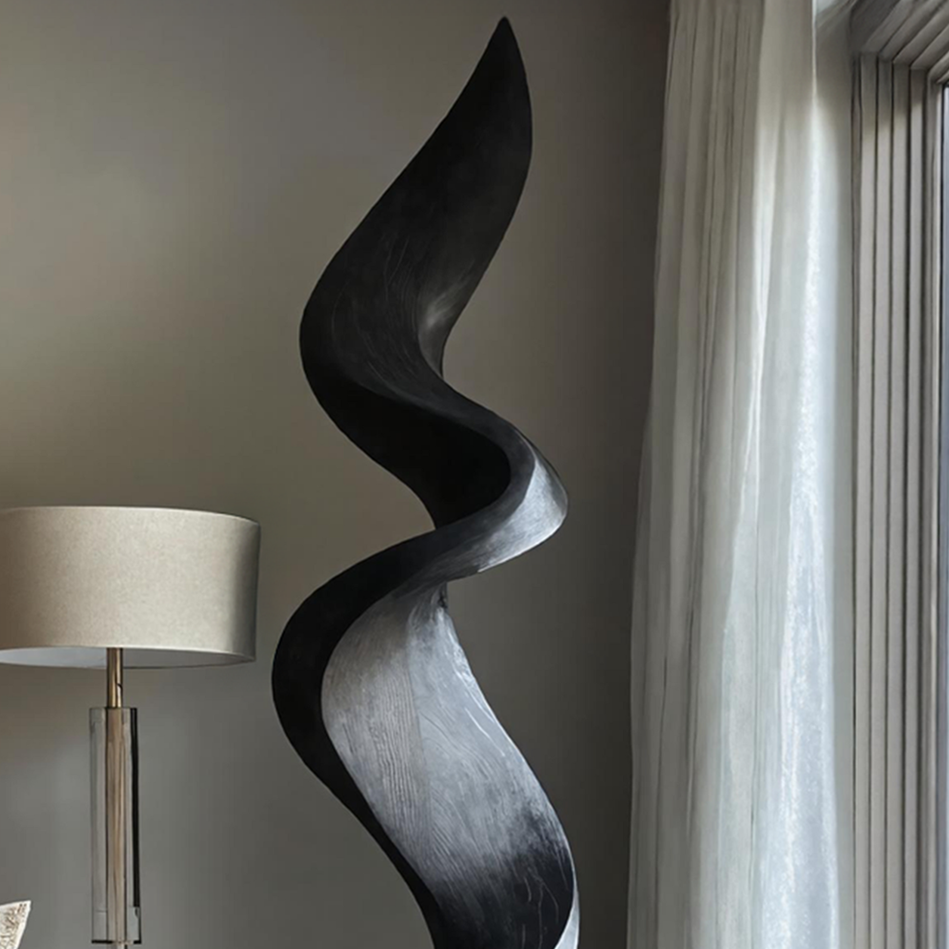 Inspired by the flowing movement of flames and the organic forms found in nature, this abstract wooden sculpture is more than just décor - it’s a visual statement. Its fluid, twisting curves evoke motion and harmony, creating a sense of energy that subtly transforms any space. Whether used as a focal point or an accent piece, it brings life and depth to minimalist, modern, and contemporary interiors.