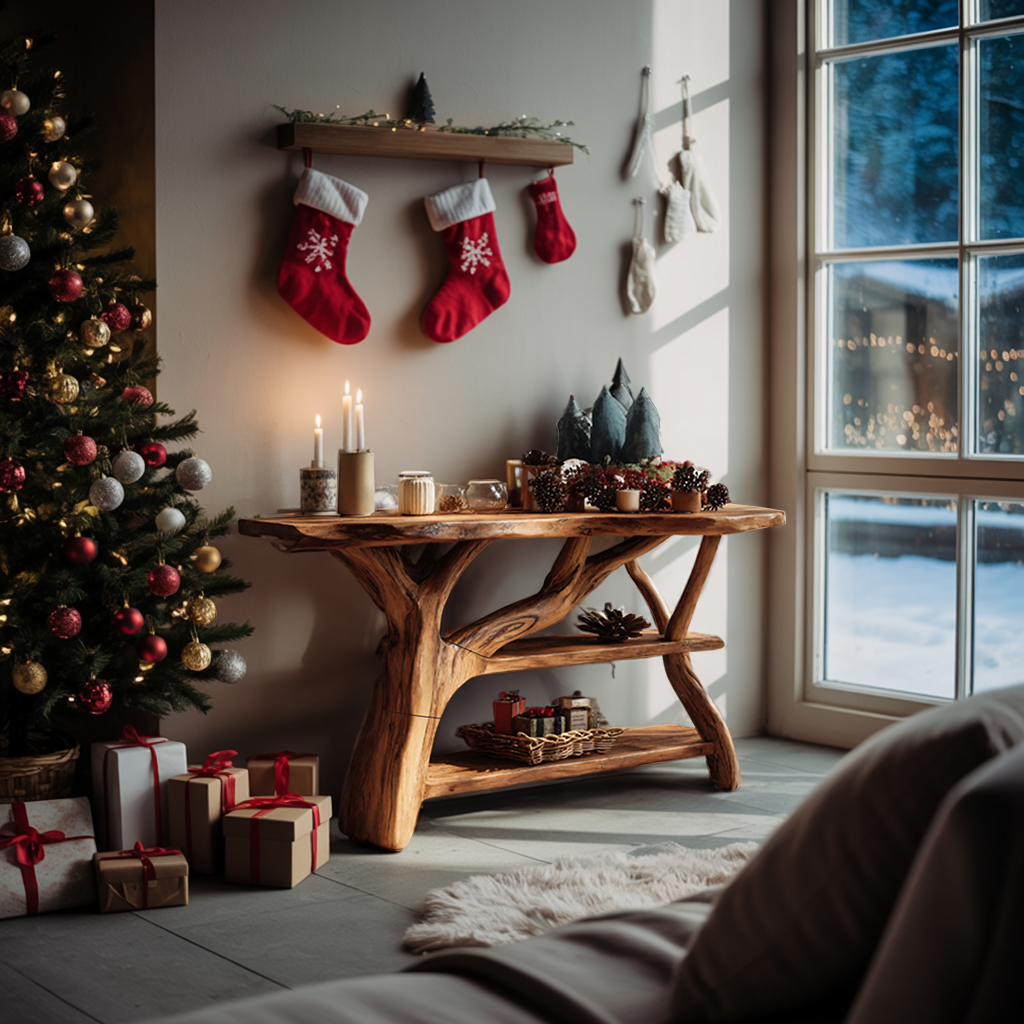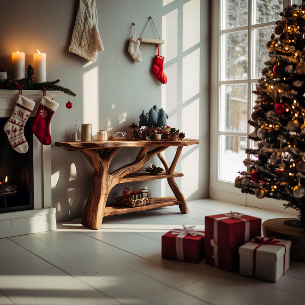 Bring rustic charm and festive warmth to your space with the Farmhouse Solid Wood Console Table For Living Room Xmas Holiday Furniture. Expertly handcrafted from durable solid wood, this table highlights the natural grain and texture that embody farmhouse style. Its sturdy build and smooth finish make it perfect for displaying Christmas ornaments, candles, or seasonal decorations. Designed to complement both holiday and everyday interiors, it adds cozy sophistication and timeless beauty to your living room décor.