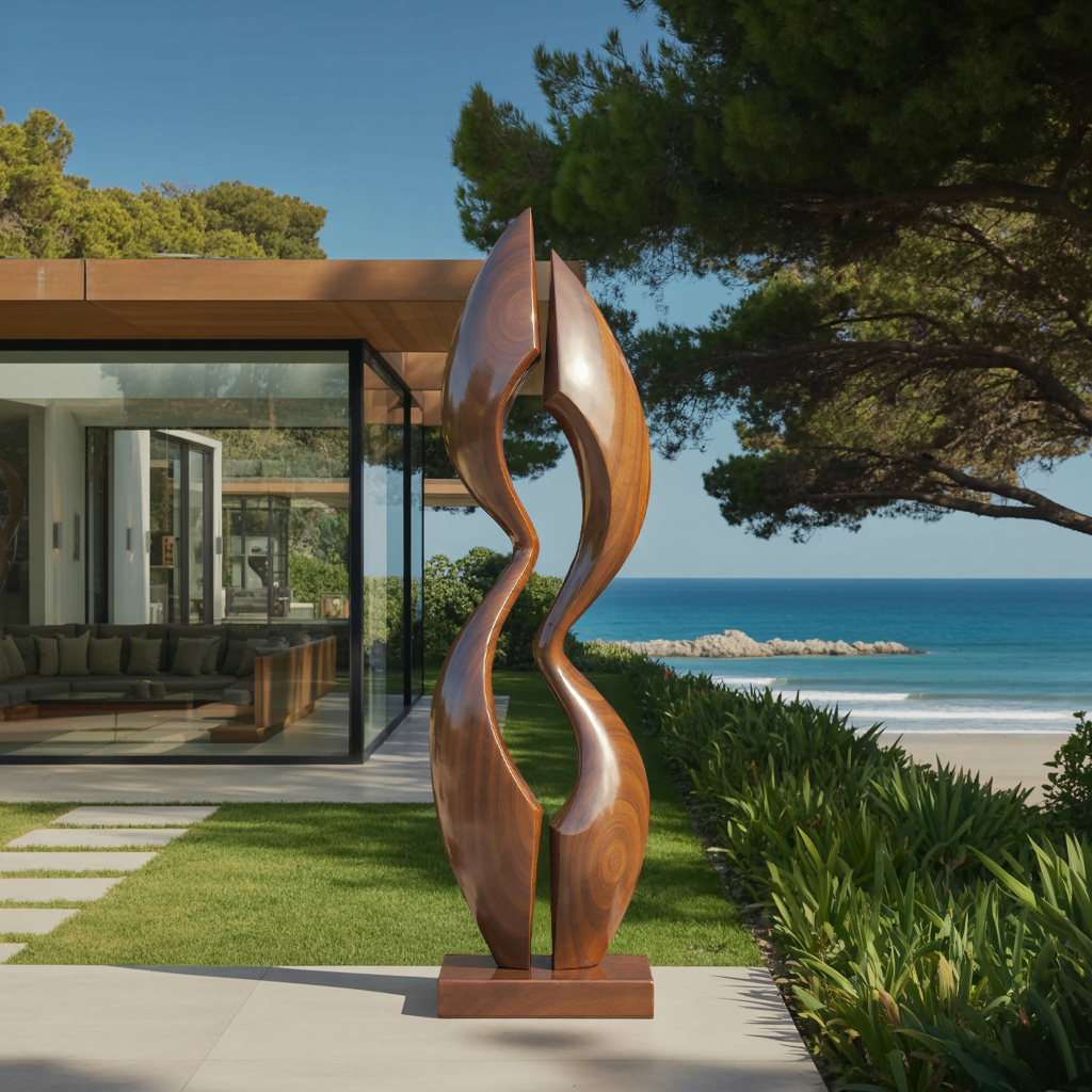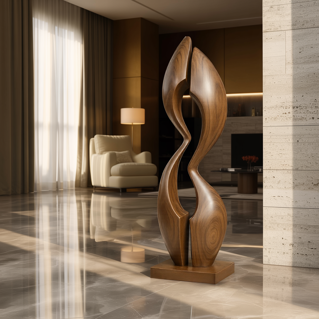 Inspired by the flowing movement of flames and the organic forms found in nature, this abstract wooden sculpture is more than just décor - it’s a visual statement. Its fluid, twisting curves evoke motion and harmony, creating a sense of energy that subtly transforms any space. Whether used as a focal point or an accent piece, it brings life and depth to minimalist, modern, and contemporary interiors.