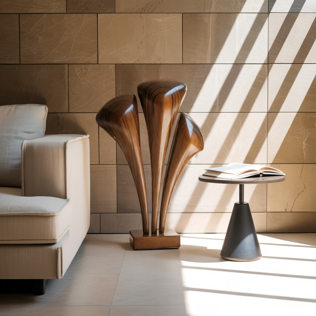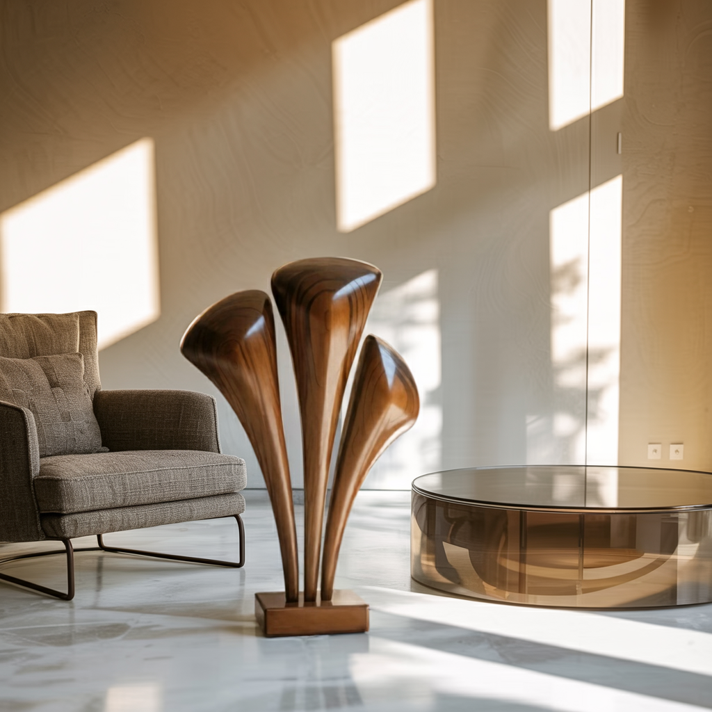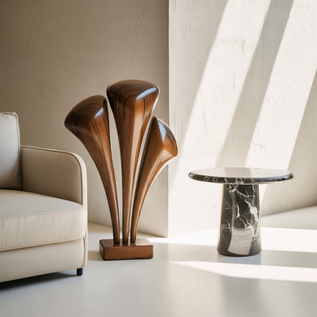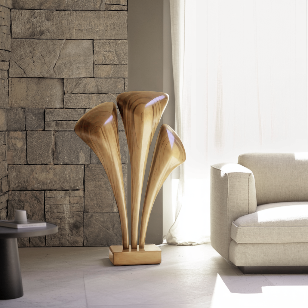 Inspired by the flowing movement of flames and the organic forms found in nature, this abstract wooden sculpture is more than just décor - it’s a visual statement. Its fluid, twisting curves evoke motion and harmony, creating a sense of energy that subtly transforms any space. Whether used as a focal point or an accent piece, it brings life and depth to minimalist, modern, and contemporary interiors.