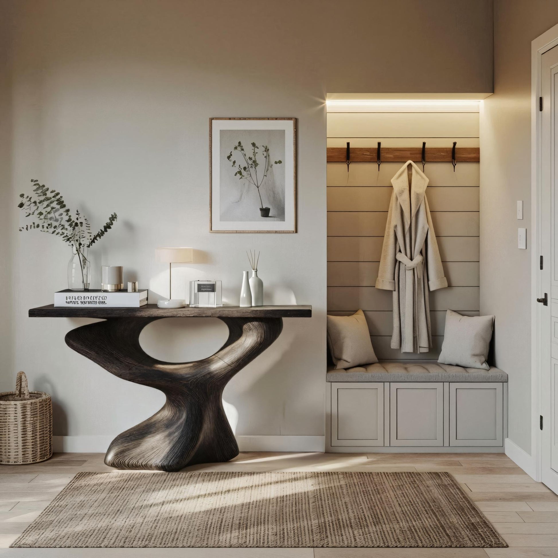 Each console table is unique, showcasing the natural beauty of solid wood through its organic grain, textures, and subtle imperfections. Every edge retains the lively character of the wood, ensuring no two pieces are ever the same. Finished with care, the surface highlights the wood’s depth and warmth—creating a centerpiece that combines practicality with understated sophistication.