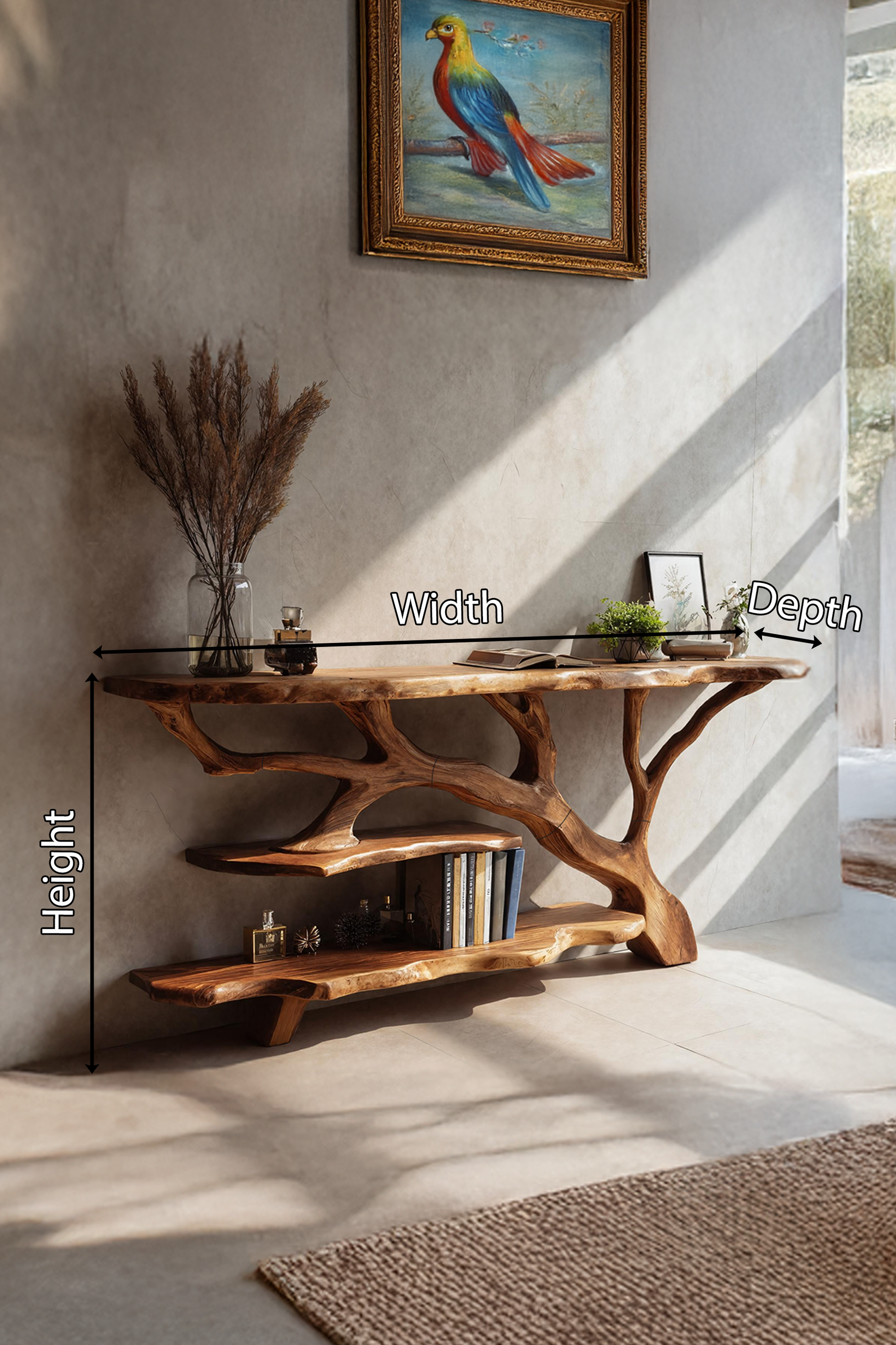 Made entirely from solid wood, every console table reflects the unique story of the material it’s built from. No two pieces are ever identical—each features distinct knots, color variations, and grain patterns that showcase the raw beauty of nature. This handcrafted quality ensures durability and authenticity, elevating it beyond a simple piece of furniture into a work of natural art.