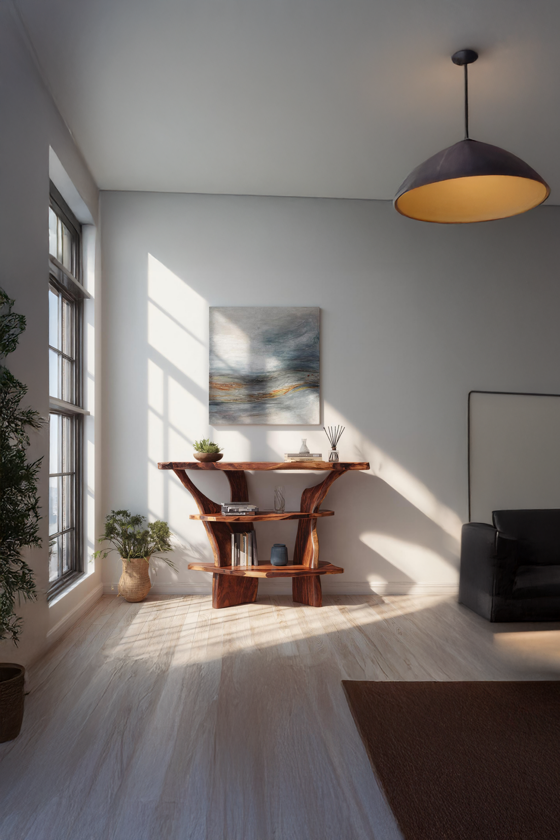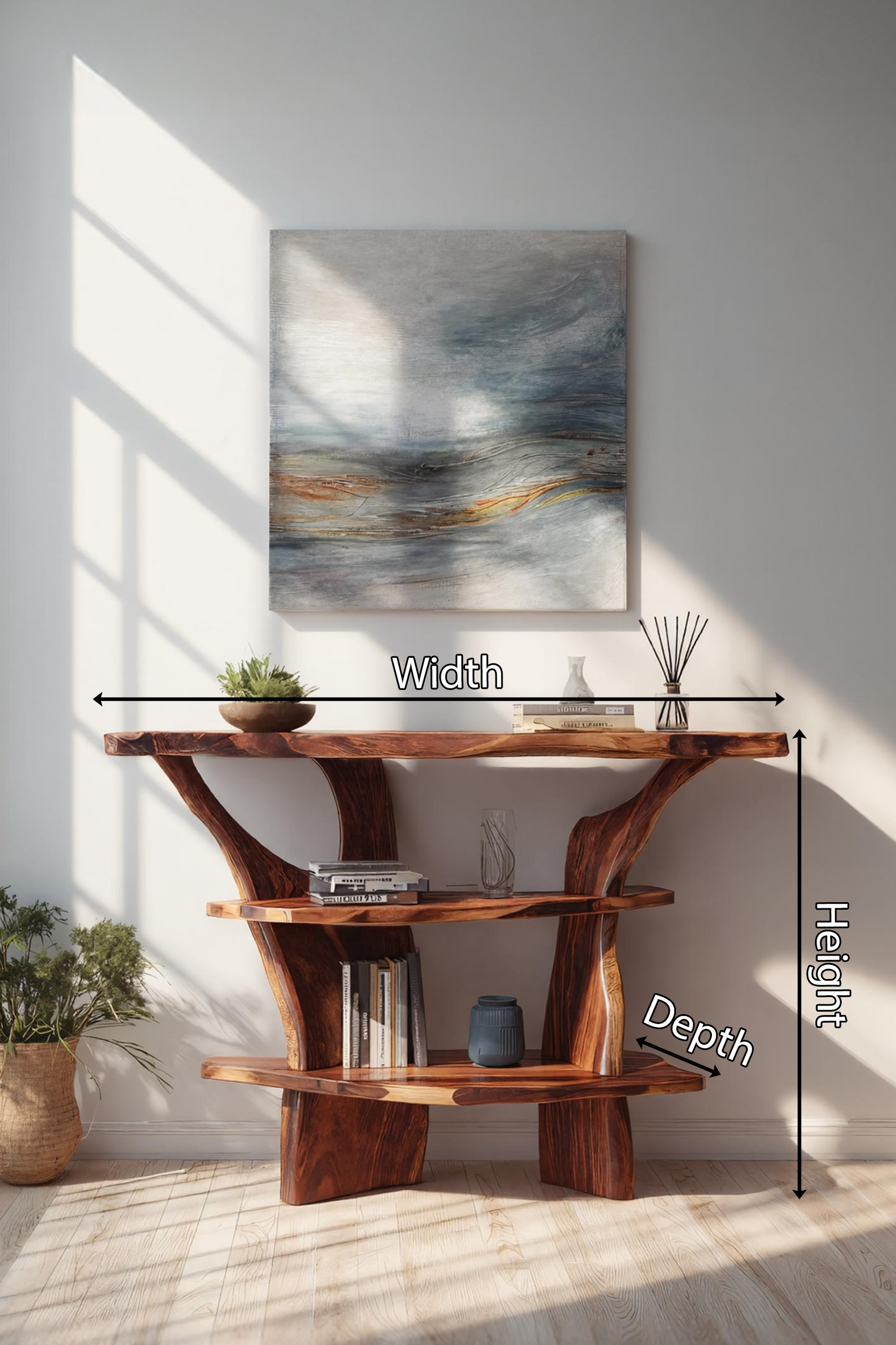 Made entirely from solid wood, every console table reflects the unique story of the material it’s built from. No two pieces are ever identical—each features distinct knots, color variations, and grain patterns that showcase the raw beauty of nature. This handcrafted quality ensures durability and authenticity, elevating it beyond a simple piece of furniture into a work of natural art.
