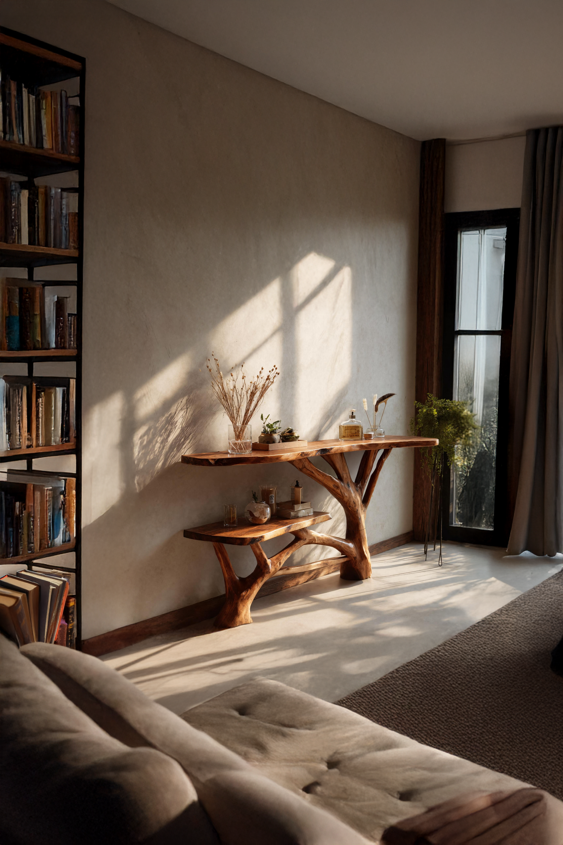 Elevate your interior with the Handcrafted Wooden Live Edge Console Table For Contemporary Furniture Decor. Carefully made from solid wood, this console table features a striking live edge design that celebrates the beauty of natural grain and texture. Its sleek, handcrafted form blends organic artistry with modern sophistication, making it a perfect accent for contemporary interiors. Ideal for displaying décor, organizing essentials, or adding a statement piece, it brings warmth, style, and craftsmanship to any space.