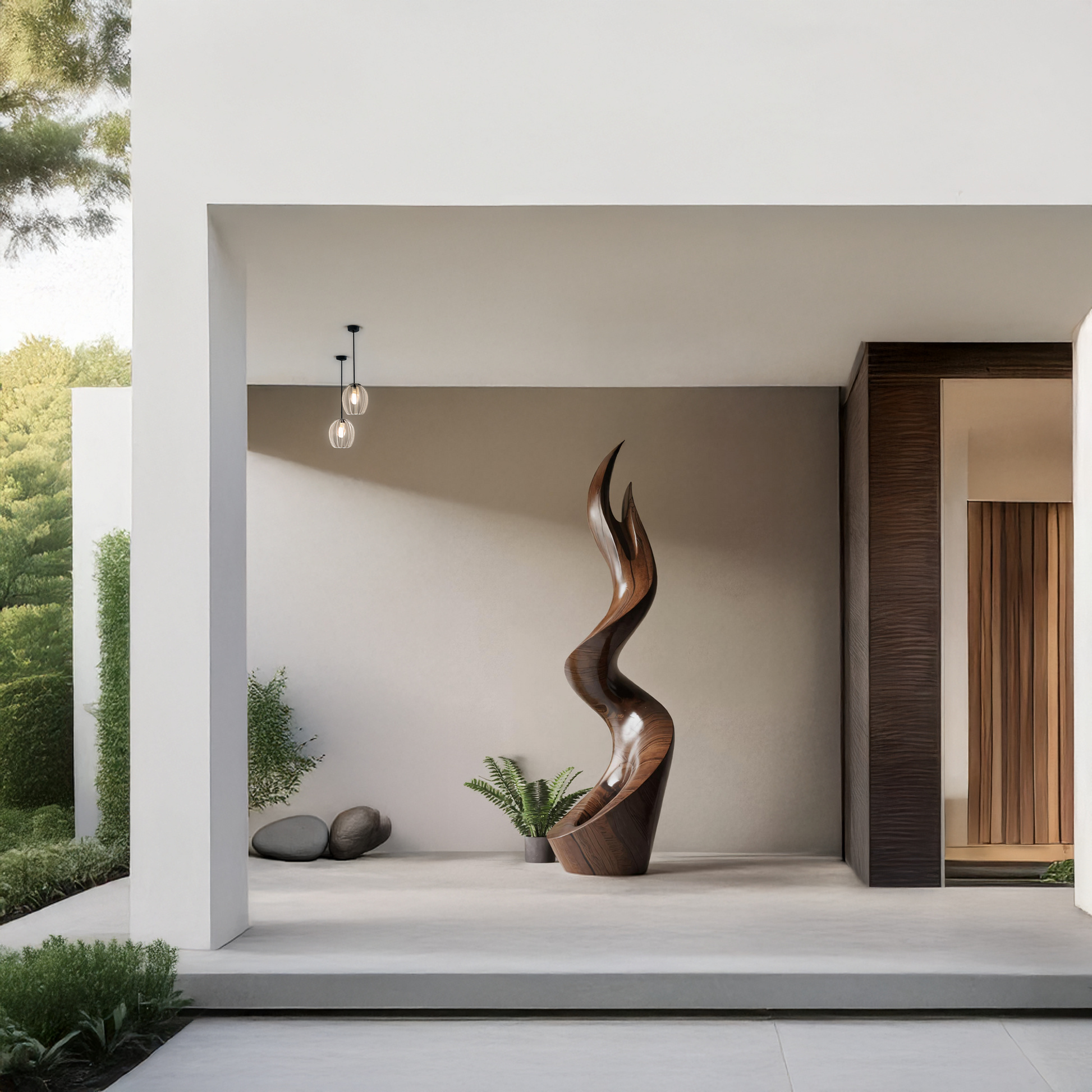 Inspired by the flowing movement of flames and the organic forms found in nature, this abstract wooden sculpture is more than just décor - it’s a visual statement. Its fluid, twisting curves evoke motion and harmony, creating a sense of energy that subtly transforms any space. Whether used as a focal point or an accent piece, it brings life and depth to minimalist, modern, and contemporary interiors.