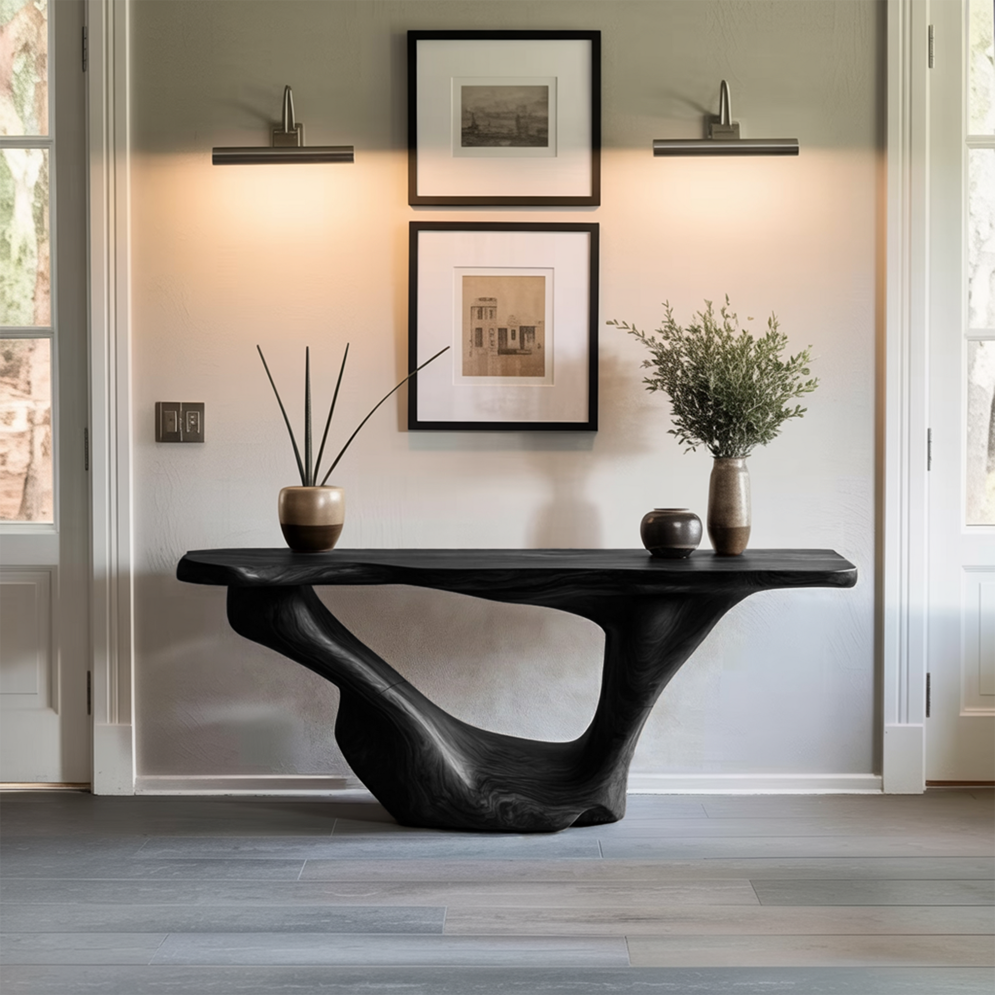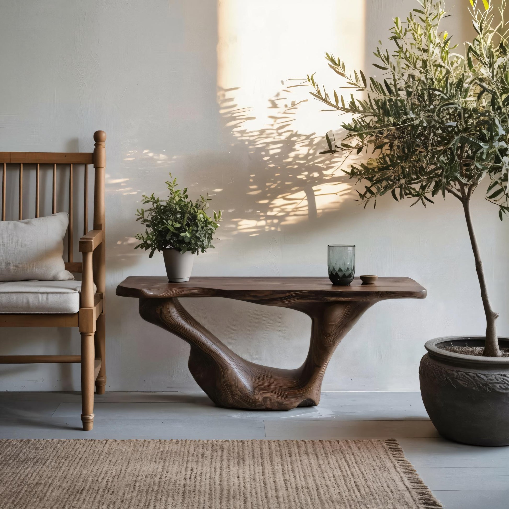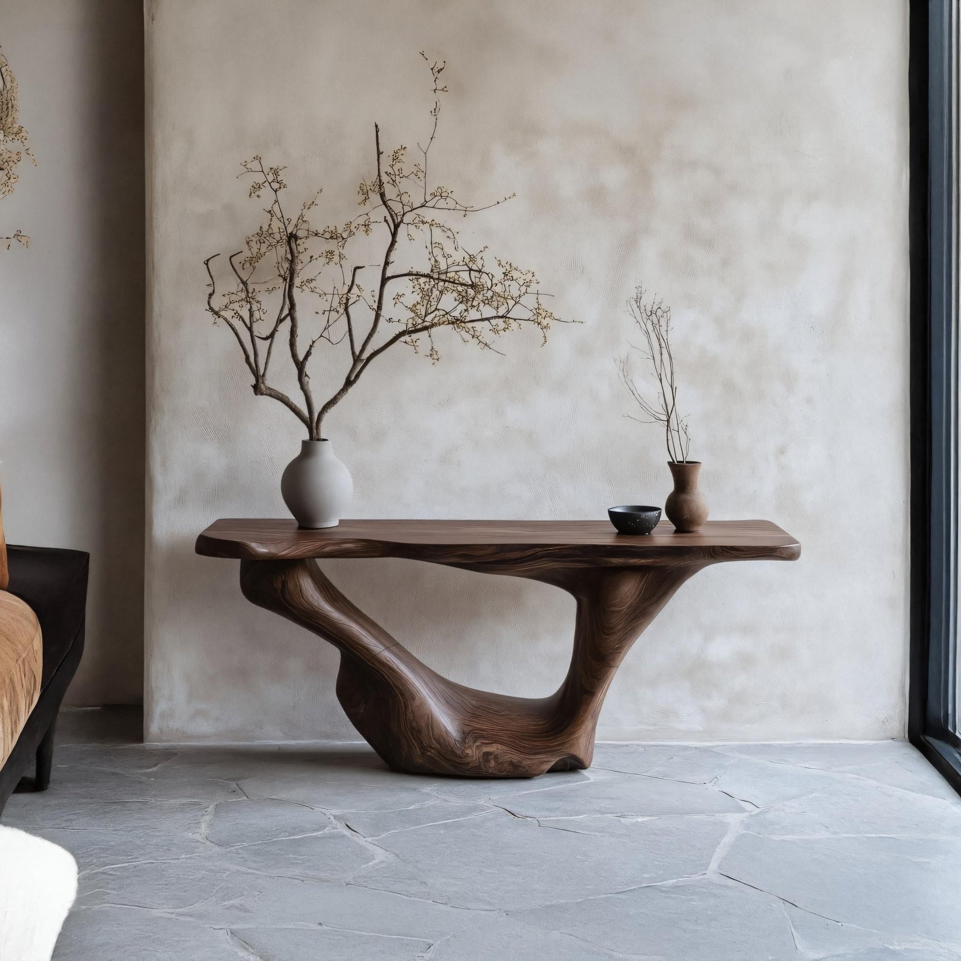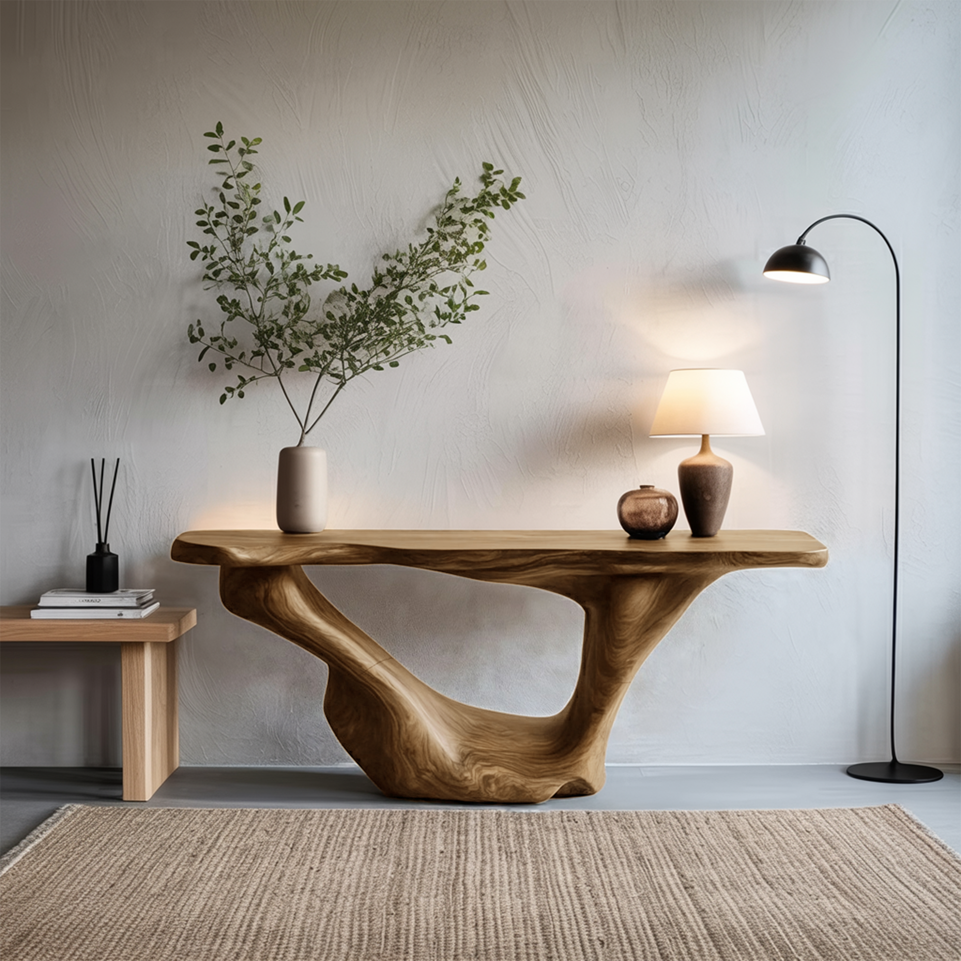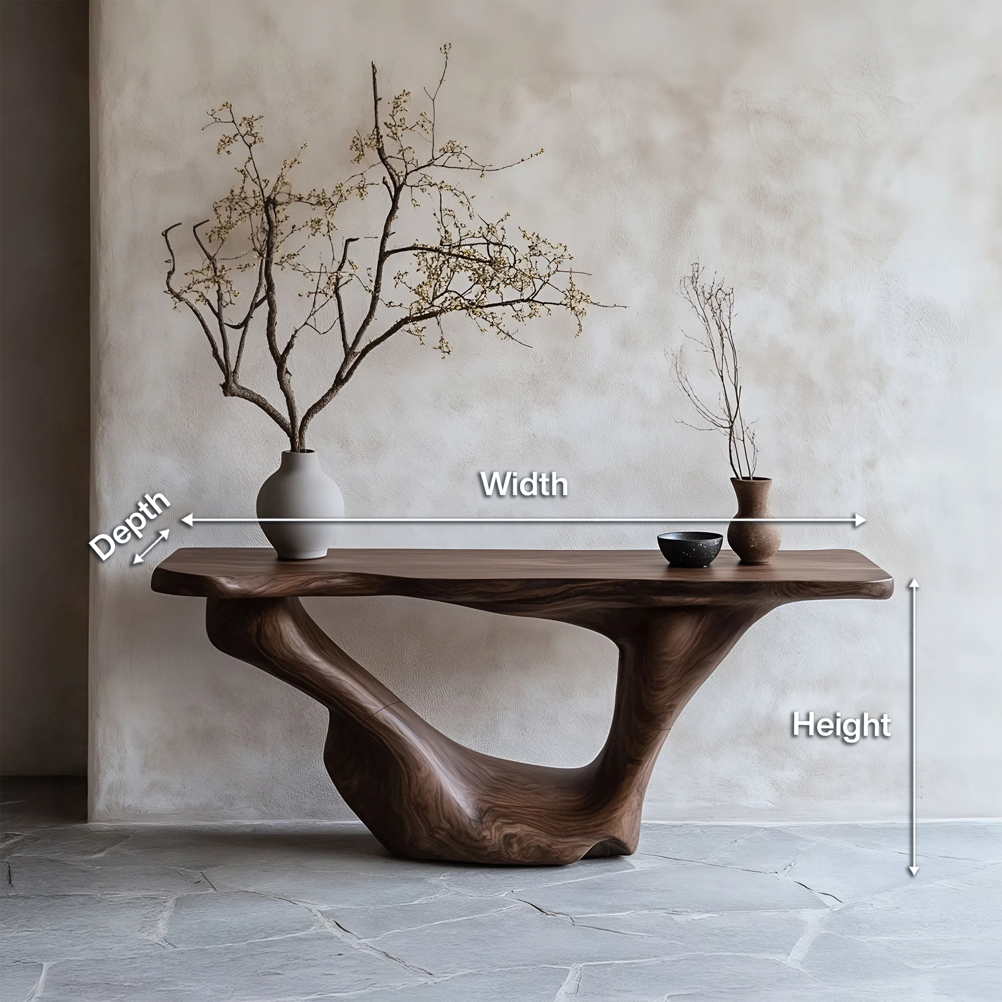 Each console table is unique, showcasing the natural beauty of solid wood through its organic grain, textures, and subtle imperfections. Every edge retains the lively character of the wood, ensuring no two pieces are ever the same. Finished with care, the surface highlights the wood’s depth and warmth—creating a centerpiece that combines practicality with understated sophistication.