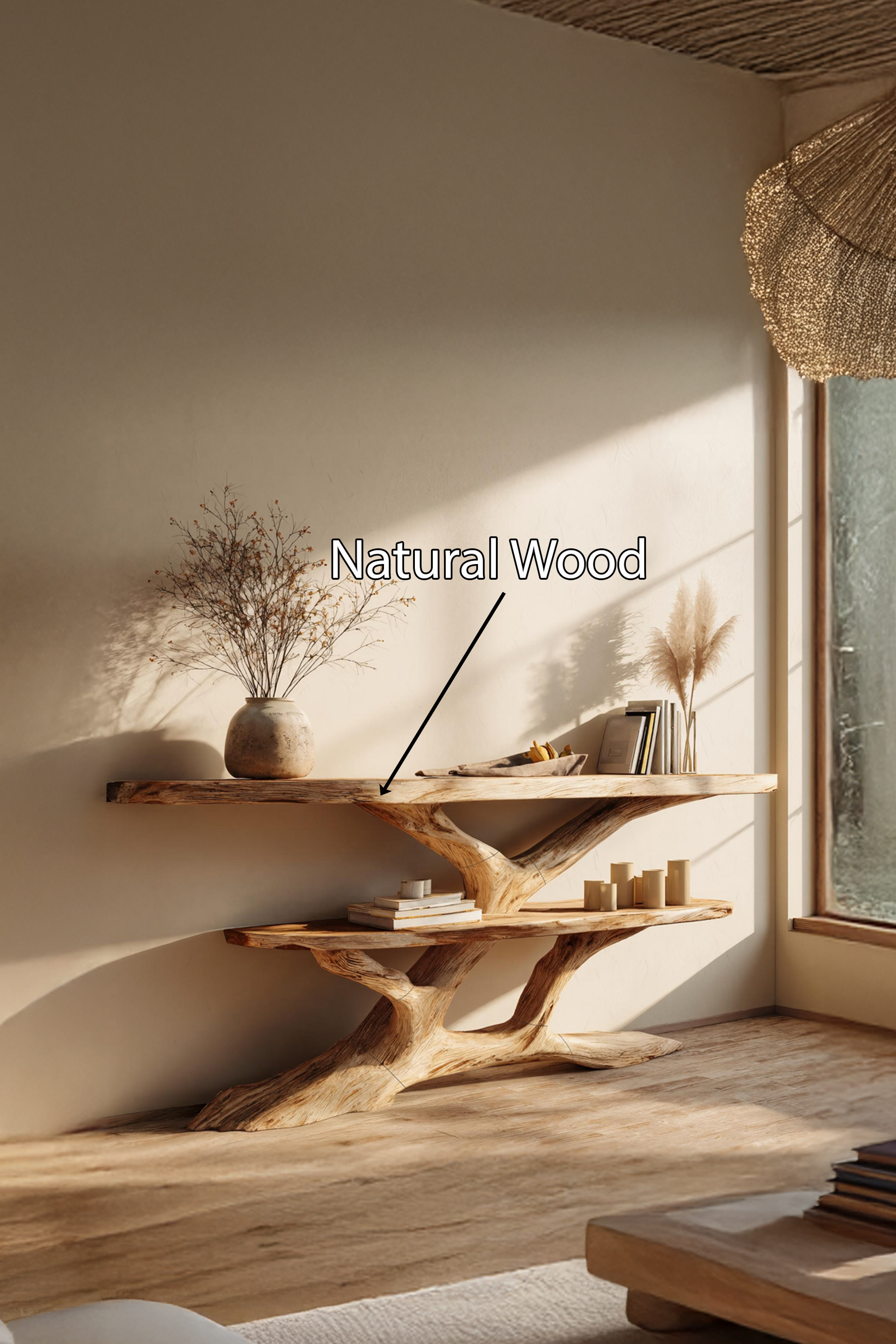 Made entirely from solid wood, every console table reflects the unique story of the material it’s built from. No two pieces are ever identical—each features distinct knots, color variations, and grain patterns that showcase the raw beauty of nature. This handcrafted quality ensures durability and authenticity, elevating it beyond a simple piece of furniture into a work of natural art.