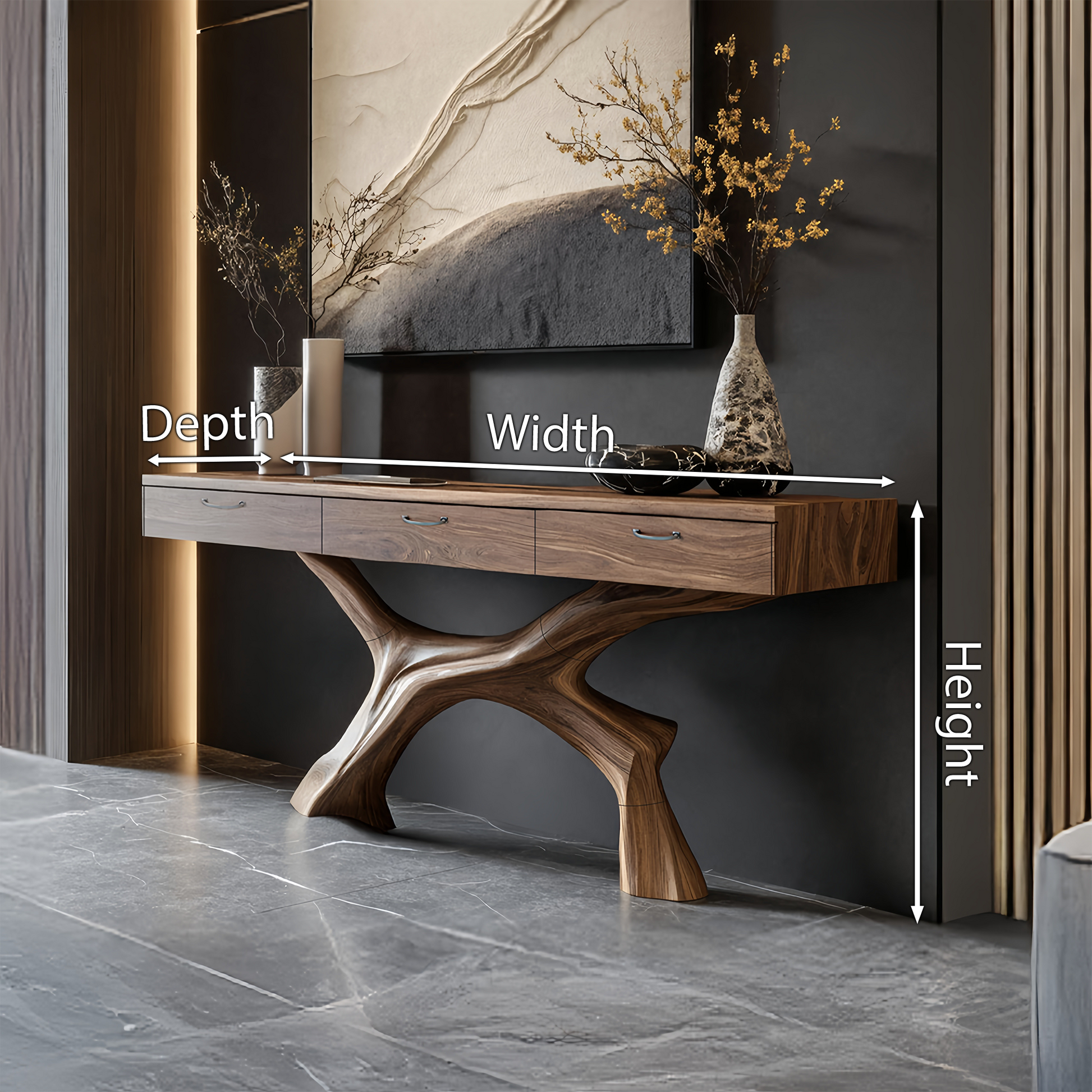 Made entirely from solid wood, every console table reflects the unique story of the material it’s built from. No two pieces are ever identical—each features distinct knots, color variations, and grain patterns that showcase the raw beauty of nature. This handcrafted quality ensures durability and authenticity, elevating it beyond a simple piece of furniture into a work of natural art.