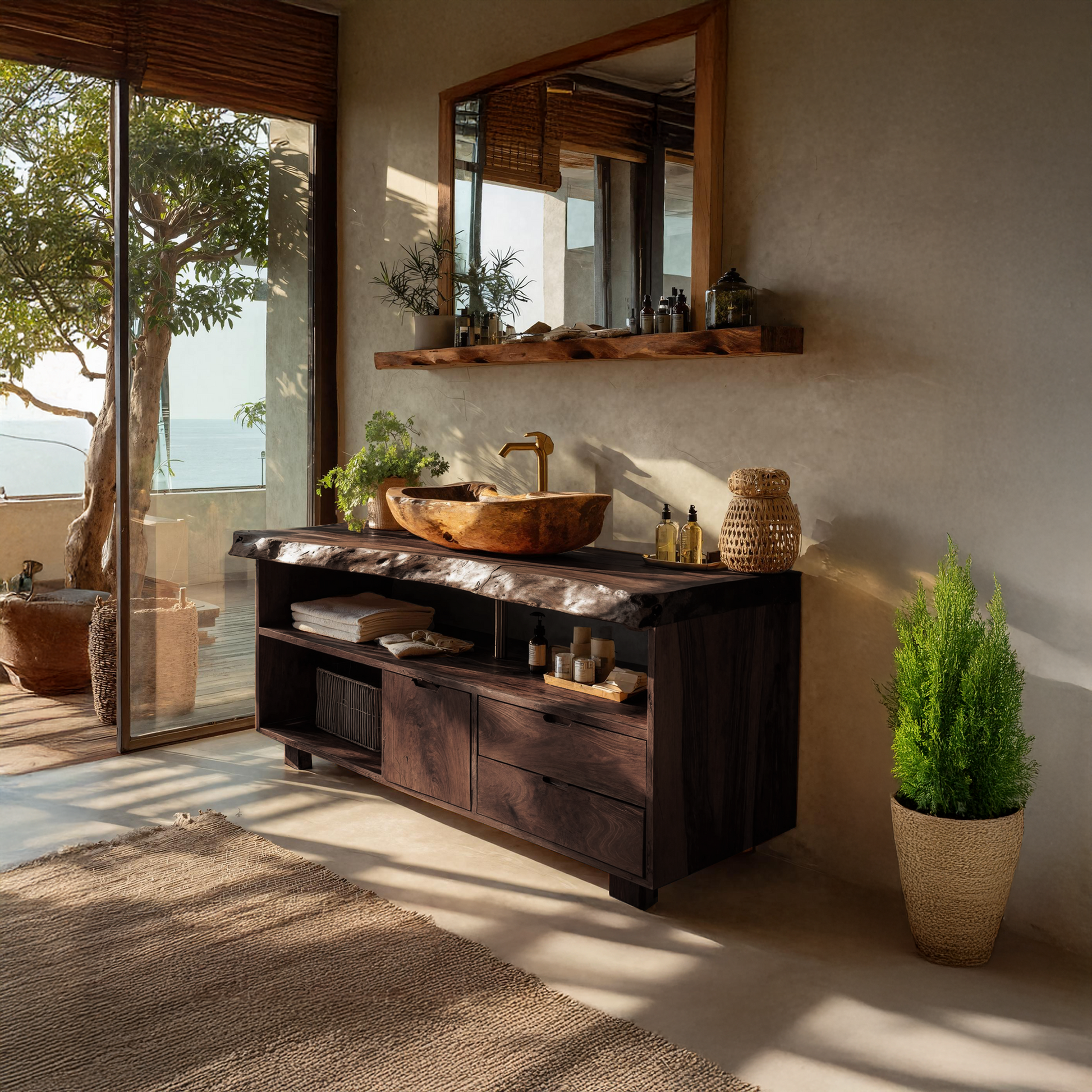 - Unique Live Edge Finish: Each piece retains the raw, organic shape of the wood, ensuring no two vanities are identical.